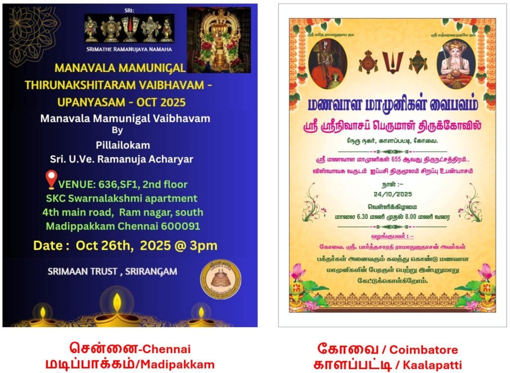 ஸ்ரீ மணவாளமாமுனிகள் திருநக்ஷத்திர உத்சவ உபன்யாசங்கள்
